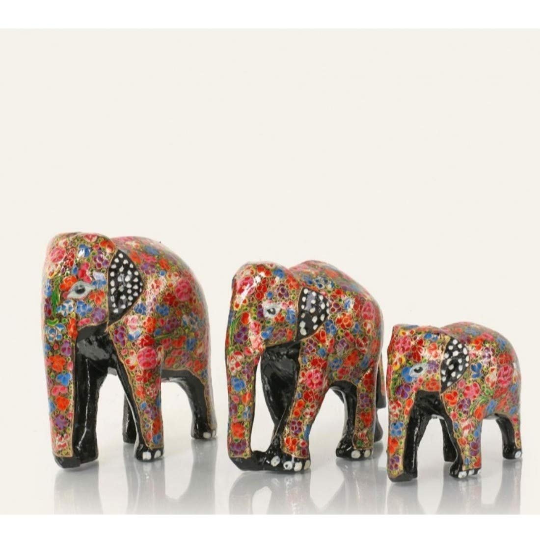 Baba Art and Crafts Kashmiri handicrafts, wooden antique hand painted Paper mache elephant statue Set of 3 Showpiece for Home Decor and Gift Purpose